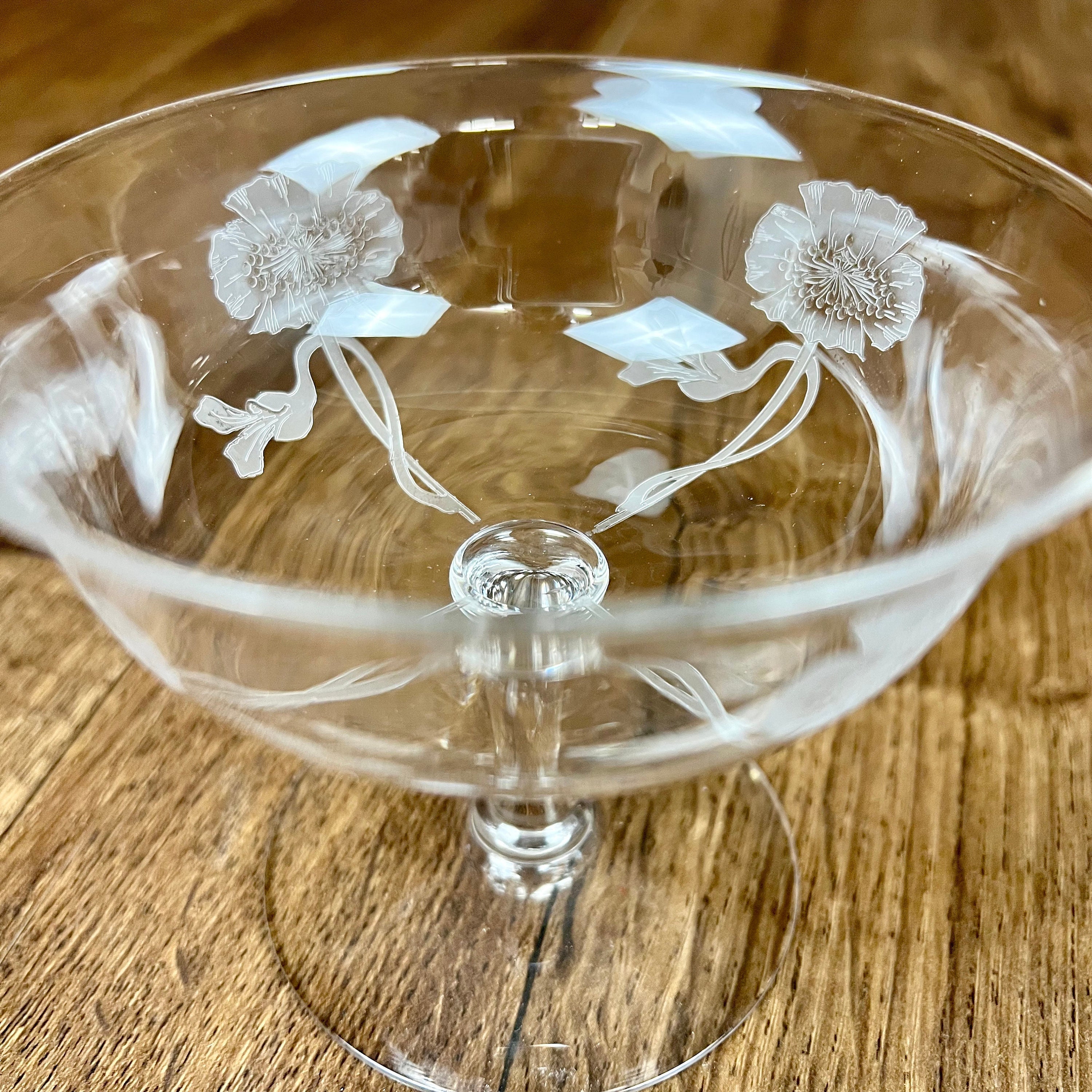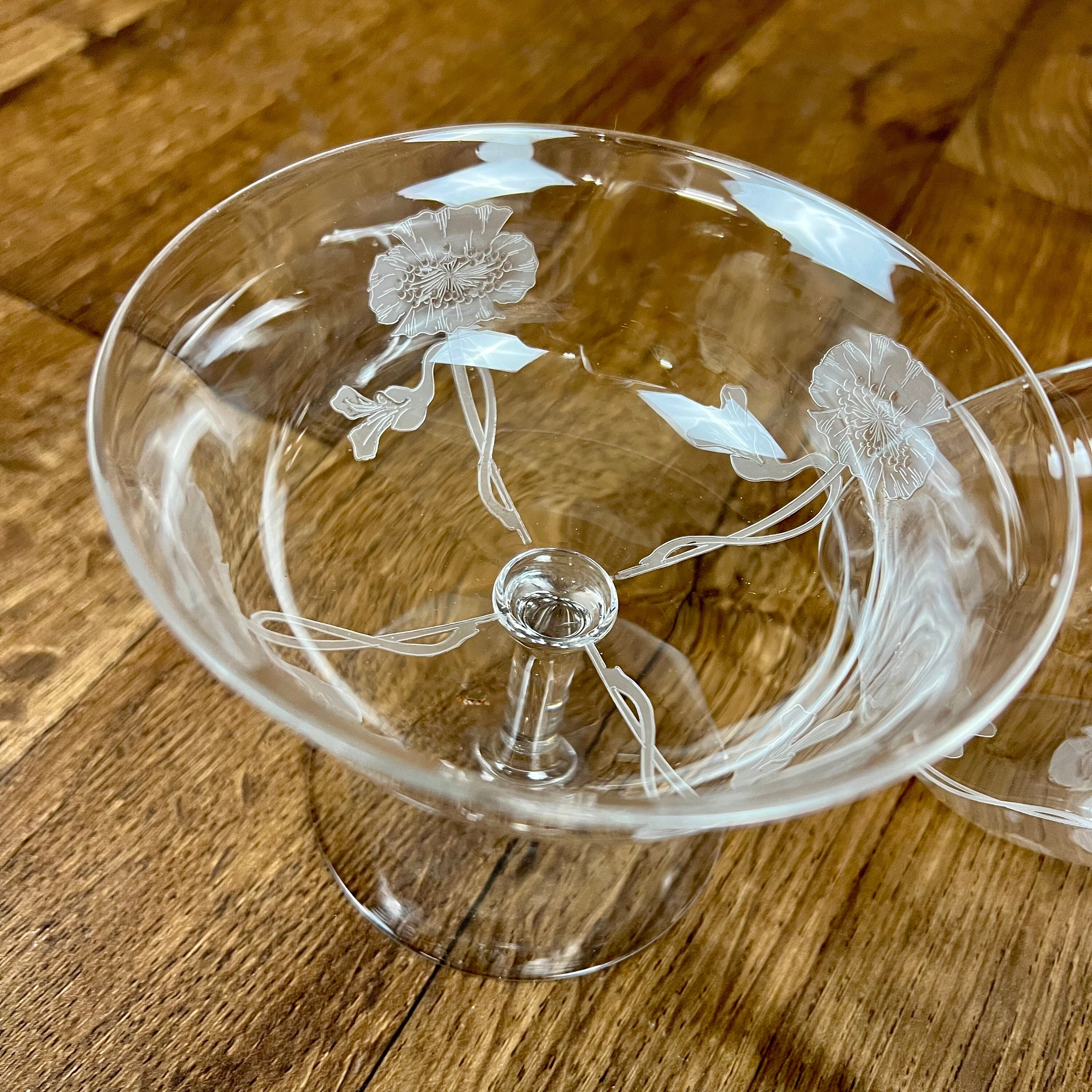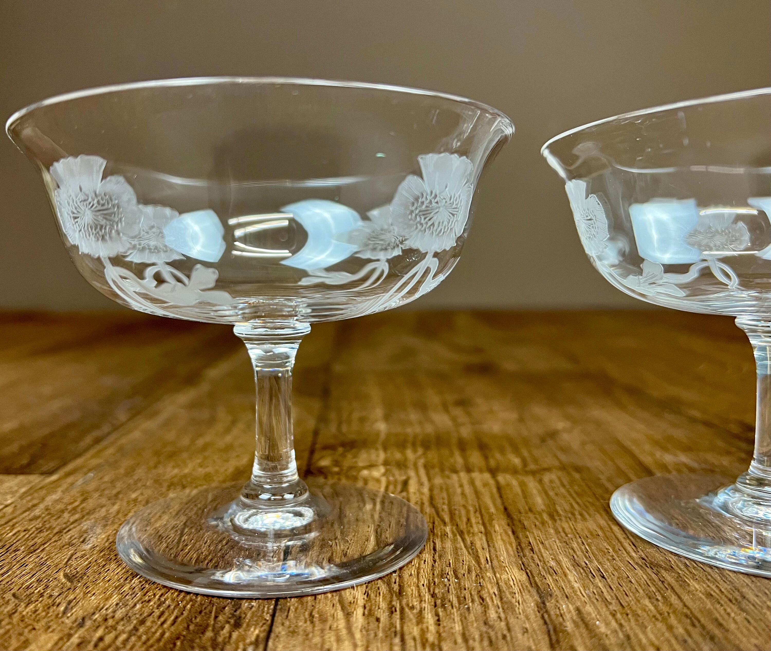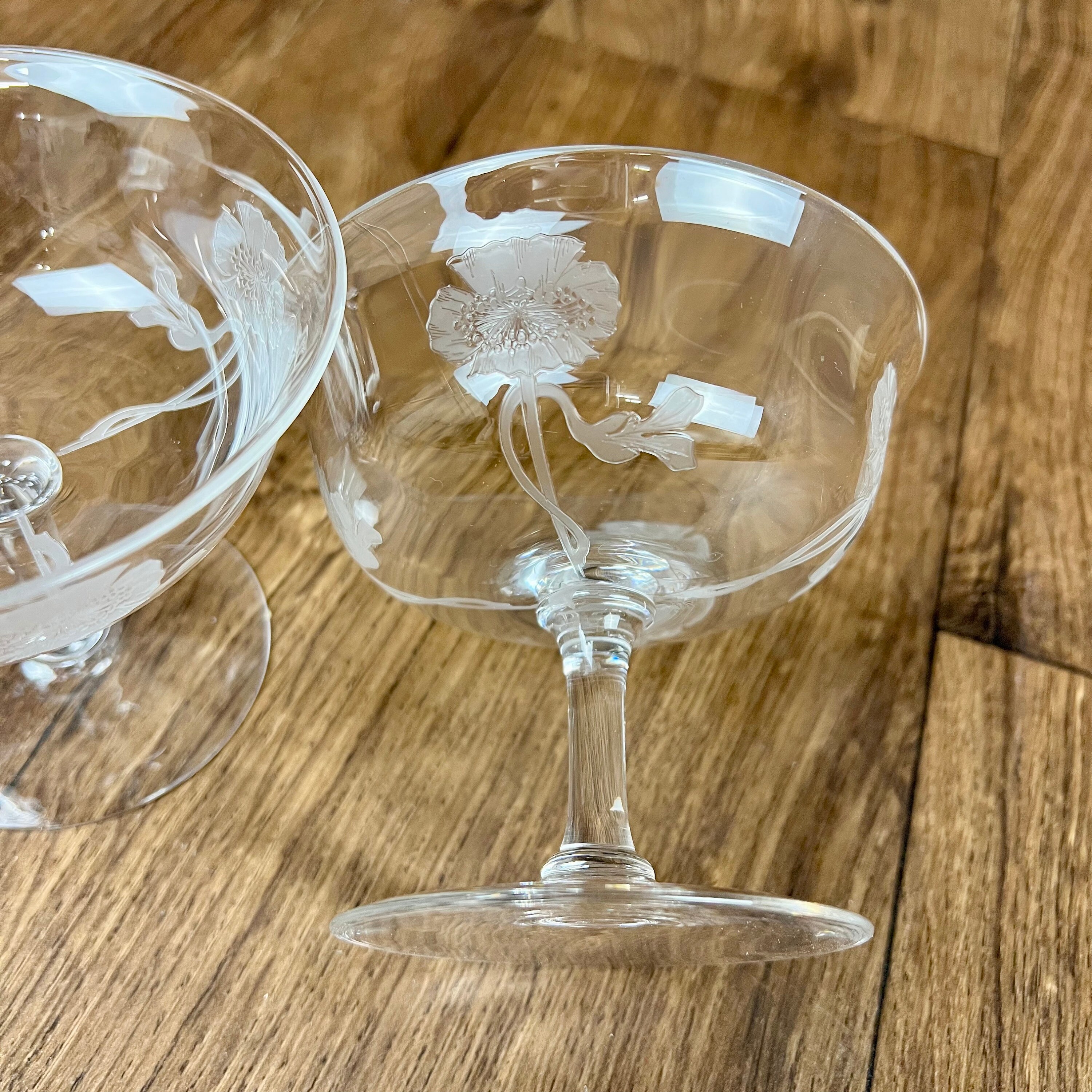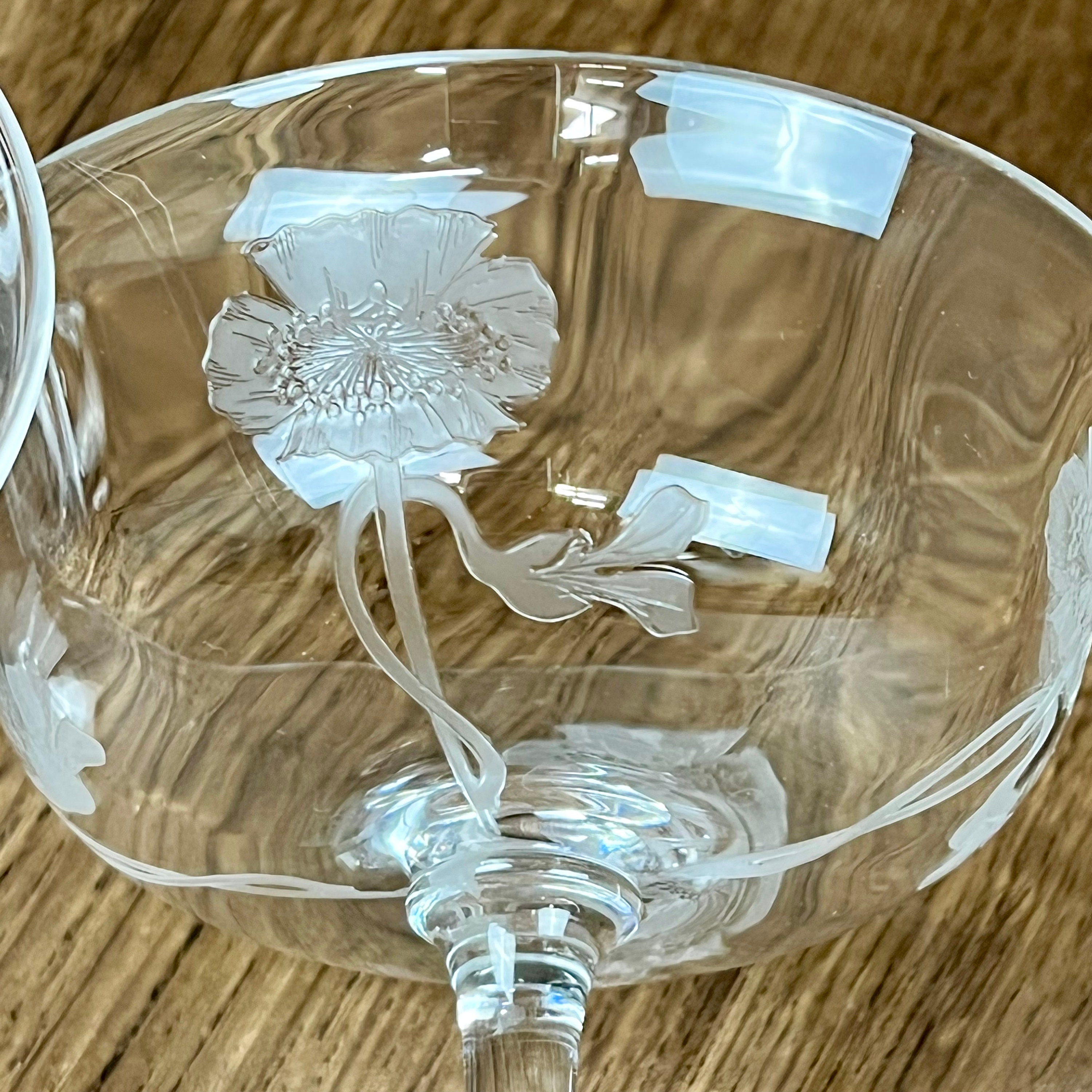 2 Dorflinger low stem dessert dish (or maybe champagne coupés) in the Kalana Poppy pattern